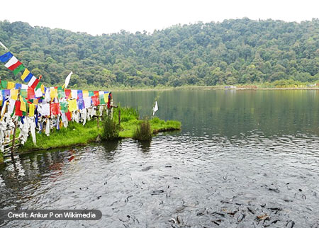 About 34 km away from Pelling Khecheopalri Lake is a serene and holy lake for Buddhists. This lake offers mesmerizing views with natural surroundings and has a peaceful and mysterious ambiance. It is a very clean lake surrounded by lush forest and greenery and gives versatile views it is also believed to be a wish-fulfilling lake by the locals. The view of the sunset is heavenly from the lake as the vibrant colors of the sunset light up the lake making it a hypnotizing view. Khecheopalri Lake has become a major tourist destination due to its tranquil environment and compelling natural views.